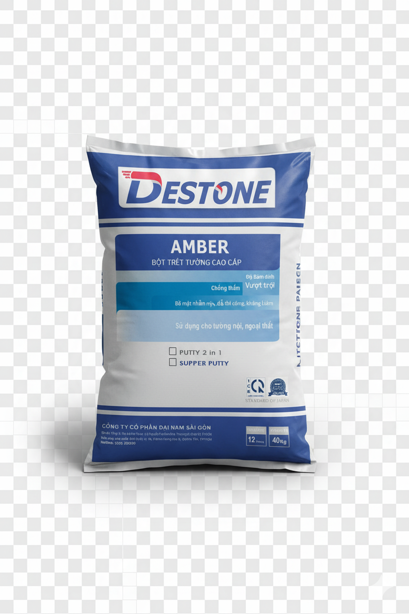 Bột trét tường (bột bả) đa dụng 2 in 1 AMBER Blue DESTONE là sản phẩm bột trét tường sử dụng trên các bề mặt nội, ngoại thất, hồ, vữa, bê tông. Công dụng – Ưu điểm: Dùng để xử lý bề mặt nội ngoại thất, tường gạch, thạch cao, xi măng…giúp che lấp các khe nứt nhỏ tạo sự bằng phẳng, bám dính tốt, chống thấm vượt trội, tạo bề mặt vững chắc, chống lại các hiện tượng rạn nứt bề mặt. Tăng cường khả năng kháng kiềm và chịu đựng thời tiết cho các loại sơn hoàn thiện.